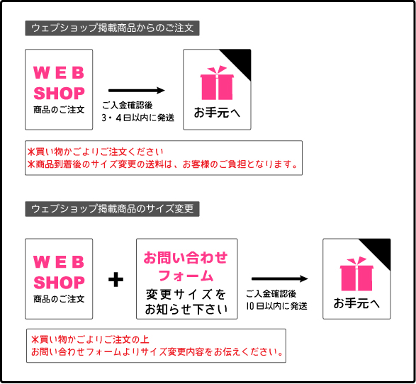 | サイズについて | ご注文から発送までの流れ | お取り扱いの注意 |